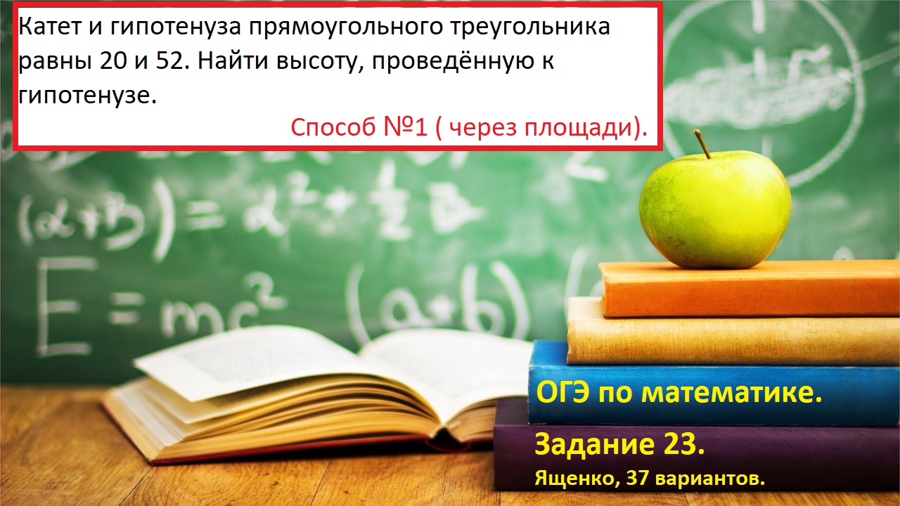 Катет и гипотенуза прямоугольного треугольника равны 20 и 52. Найти высоту, проведённую к гипотенузе ______________________________ ПОДПИШИСЬ: 1. Запасной канал:https://rutube.ru/channel/24546520/vi... 2. Группа: https://vk.com/math_for_dummies __________________________________ #ОГЭпоматематике #ОГЭпоматематикеЗадание23 #ОГЭпоматематикевтораячасть #ОГЭвысотапроведеннаякгипотенузе