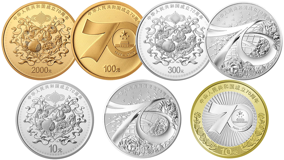 7 монет Китая посвящённых 70 летию образования КНР.