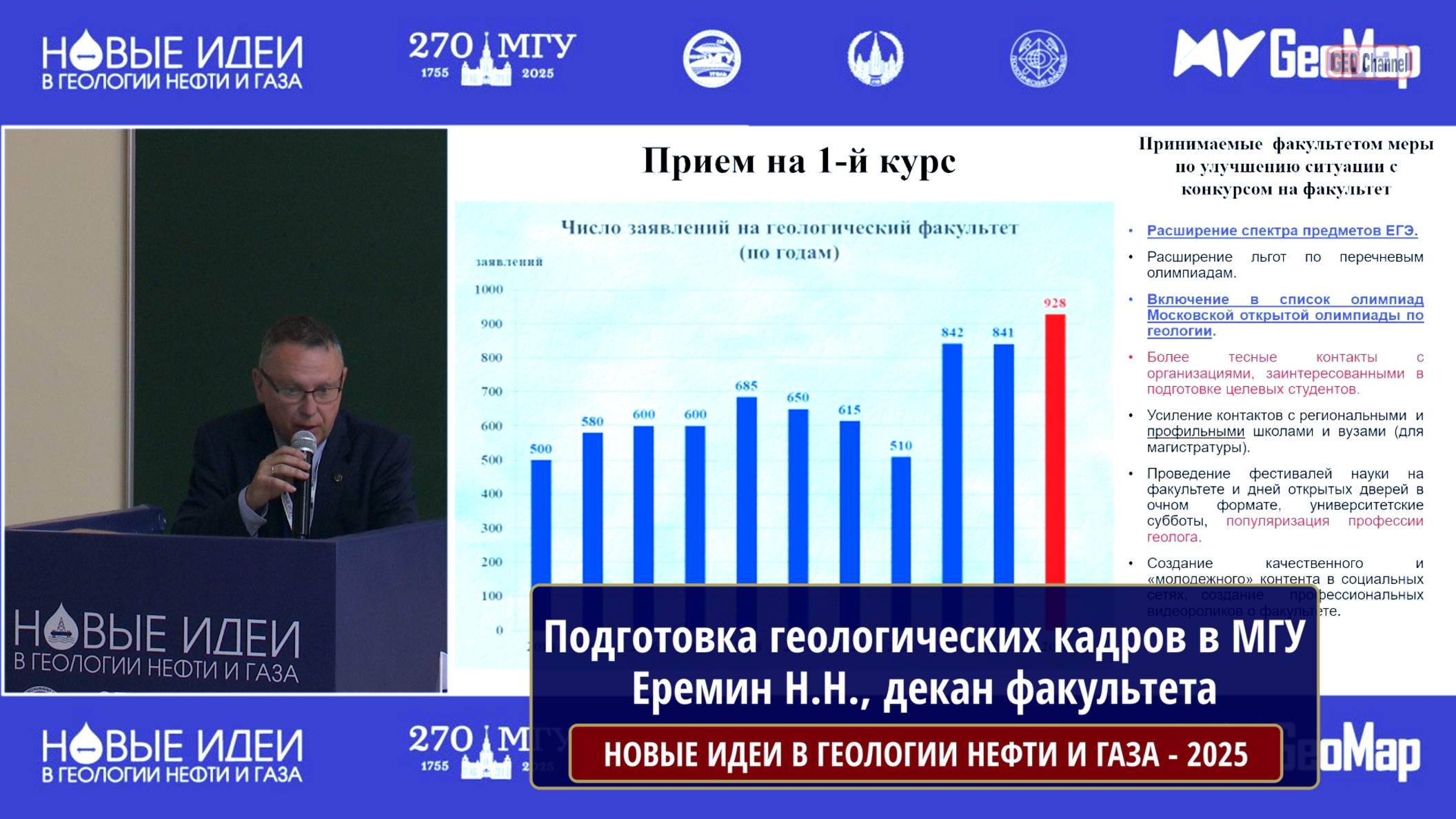 Подготовка геологических кадров в МГУ им. Ломоносова. Еремин Н.Н., декан