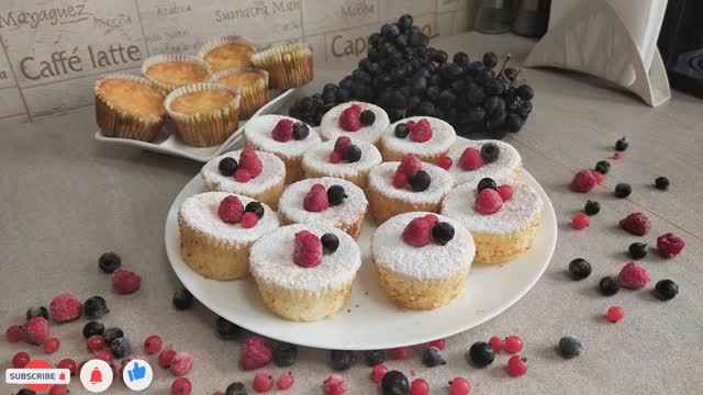 Рецепт на большую закладку: Творог-600гр. яйцо-6 шт. манка-160гр. разрыхлитель-20гр. ваниль-1ч.ложка Сметана-400гр. Сахар-140гр. щепотку соли Сахарная пудра и ягоды для украшения.