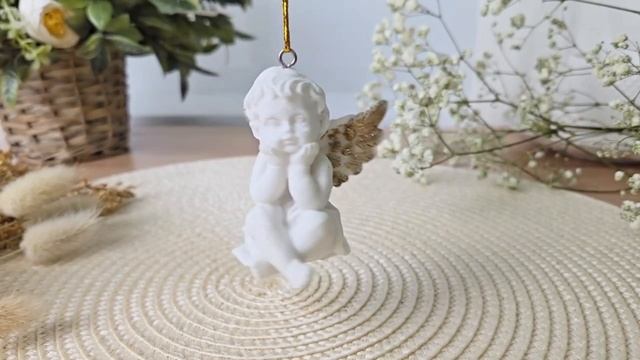 Ёлочная игрушка МЕЧТАЮЩИЙ АНГЕЛ с золотистыми крылышками, полистоун, 6 см, 1123155-2