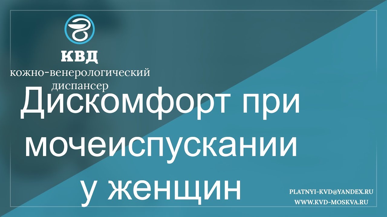 Дискомфорт при мочеиспускании у женщин характерно для многих урологических заболеваний. Боль в процессе микции или после нее говорит о том, что есть какой-то пораженный отдел мочеполовой системы. Подробнее - https://kvd-moskva.ru/boleznennoe-mocheispuskanie-u-zhenshchin/ Для подробной консультации по этому вопросу, обращайтесь в платный центр КВД-Москва. Наши телефоны: 8 (495) 642-30-37, 8 (495) 532-66-57 Наш e-mail: platnyi-kvd@yandex.ru Наш сайт: http://kvd-moskva.ru