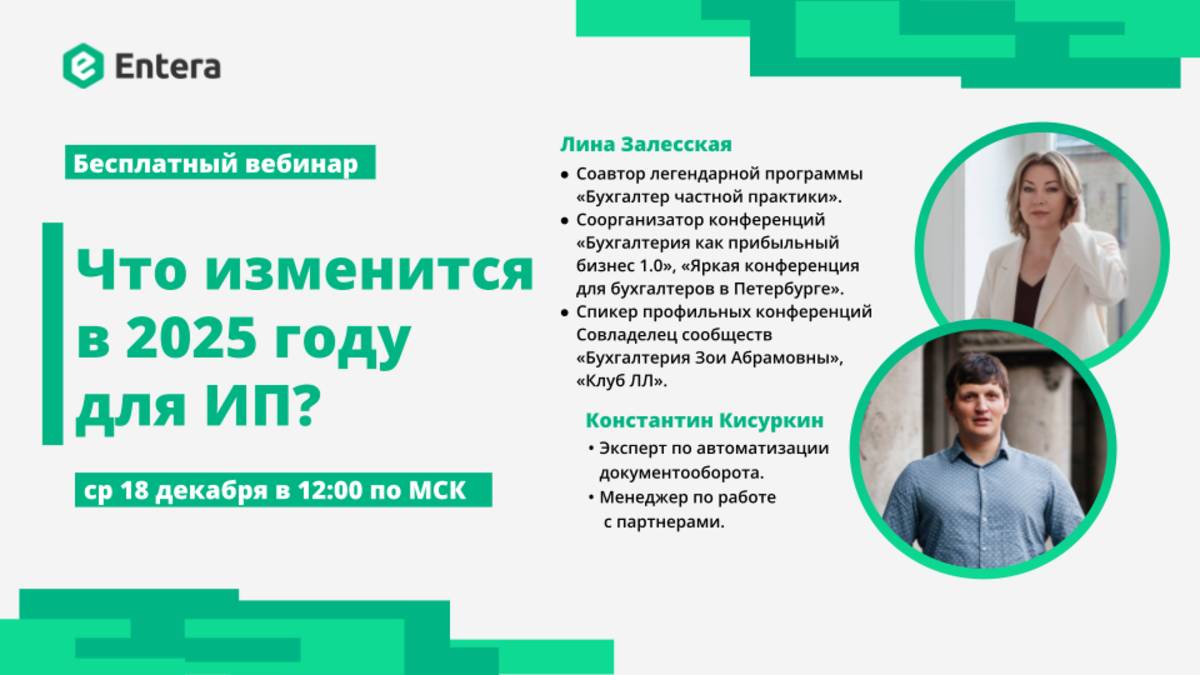 Спикеры рассказали о том, какие изменения ждут ИП и бухгалтеров в новом году из-за налоговой реформы 2025. Лина Залесская - соавтор программы «Бухгалтер частной практики», соорганизатор бухгалтерских конференций, совладелец сообществ «Бухгалтерия Зои Абрамовны», бухгалтер со стажем 22 года и налоговый консультант. Эксперт рассказала все про изменения в работе бухгалтера для ИП в 2025: ✅ Про налоговую реформу (УСН с НДС). ✅ Какие будут изменения в ПСН? ✅ Налоговые каникулы по регионам. ✅ Страховые взносы. ✅ Прочие важные изменения 2025. Константин Кисуркин - эксперт в области автоматизации документооборота. Спикер поделился лайфхаками по работе с документами, которые помогут сэкономить время бухгалтеру.