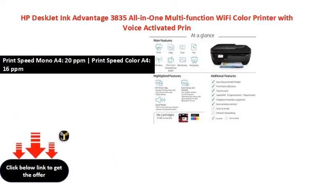 https://www.flipkart.com/hp-deskjet-ink-advantage-3835-all-in-one-multi-function-wifi-color-printer-voice-activated-printing-google-assistant-alexa/p/itmeehxajurnrmt6?pid=PRNEEHXAUXYUTUY3&affid=jpcompute HP DeskJet Ink Advantage 3835 All-in-One Multi-function WiFi Color Printer with Voice Activated Printing Google Assistant and Alexa (Black, Ink Cartridge) Output: Color WiFi, WiFi Direct | USB Cost per Page (Black): 1.15 | Cost per Page (Color): 3.66 Print Speed Mono A4: 20 ppm | Print Speed Color A4: 16 ppm https://www.flipkart.com/hp-deskjet-ink-advantage-3835-all-in-one-multi-function-wifi-color-printer-voice-activated-printing-google-assistant-alexa/p/itmeehxajurnrmt6?pid=PRNEEHXAUXYUTUY3&affid=jpcompute