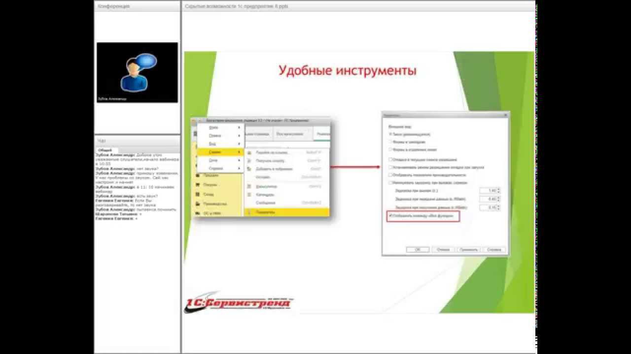 01 07 2015 г. «Скрытые возможности 1С:Предприятие 8» a. Индивидуальная настройка рабочего пространства. b. Выгрузка данных в excell из различных объектов 1С. c. Настройка внешнего вида отчетов «под себя». d. Ссылки на документы, справочники, отчеты – быстрый обмен информацией. e. Анализ связей документов, справочников… f. История моих действий и ее использование. g. Настройка печати. h. Подборки пользователя – как использовать?