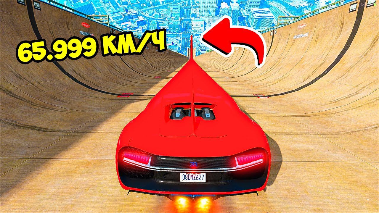 СПУСК БЕЗ ТОРМОЗОВ НА ДЛИННОМ БУГАТТИ ЧИРОН ЛИМУЗИНЕ ПО ТРАМПЛИНУ В ГТА 5 МОДЫ! В GTA 5 ВИДЕО MODS