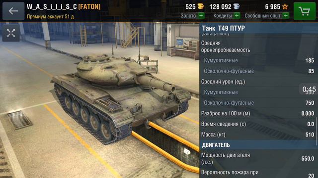 ТТХ танка Т49 ПТУР в ангаре