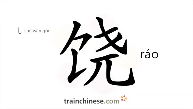 饶 (ráo) rich, plentifjul; although; to pardon, forgive; haver mercy on; let off; give extra