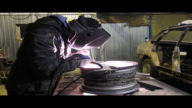 Ещё один колёсный диск отремонтирован после большой ямы на дороге.