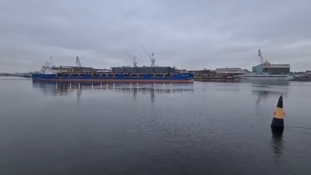 Проход но Неве сухогруза «Пола Анастасия», порт приписки Санкт-Петербург, построен на заводе ОСК «Красное Сормово» в 2020 году по проекту RSD59.