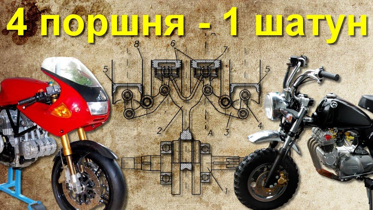 4 поршня на 1 шатун - как это возможно на мотоцикле?