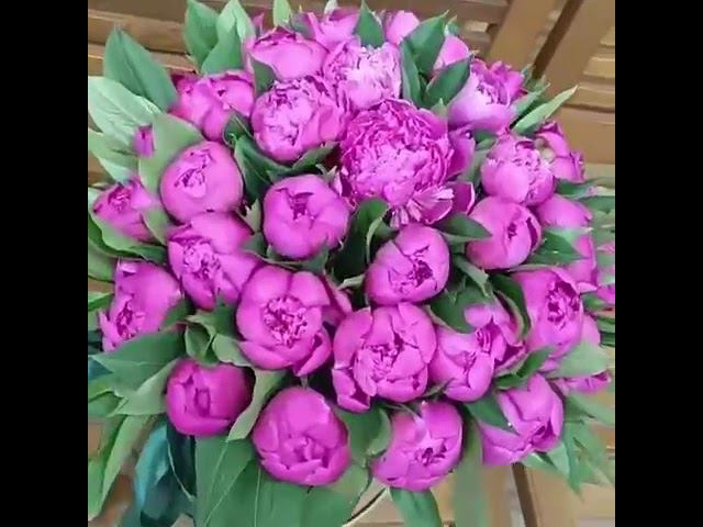 Розовые пионы в коробке 37 шт Фуксия