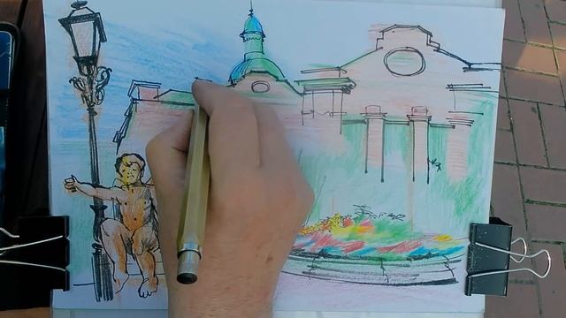 Городская зарисовка цв. карандашами Рисую Объясняю Разговариваю City sketch I draw I explain I talk