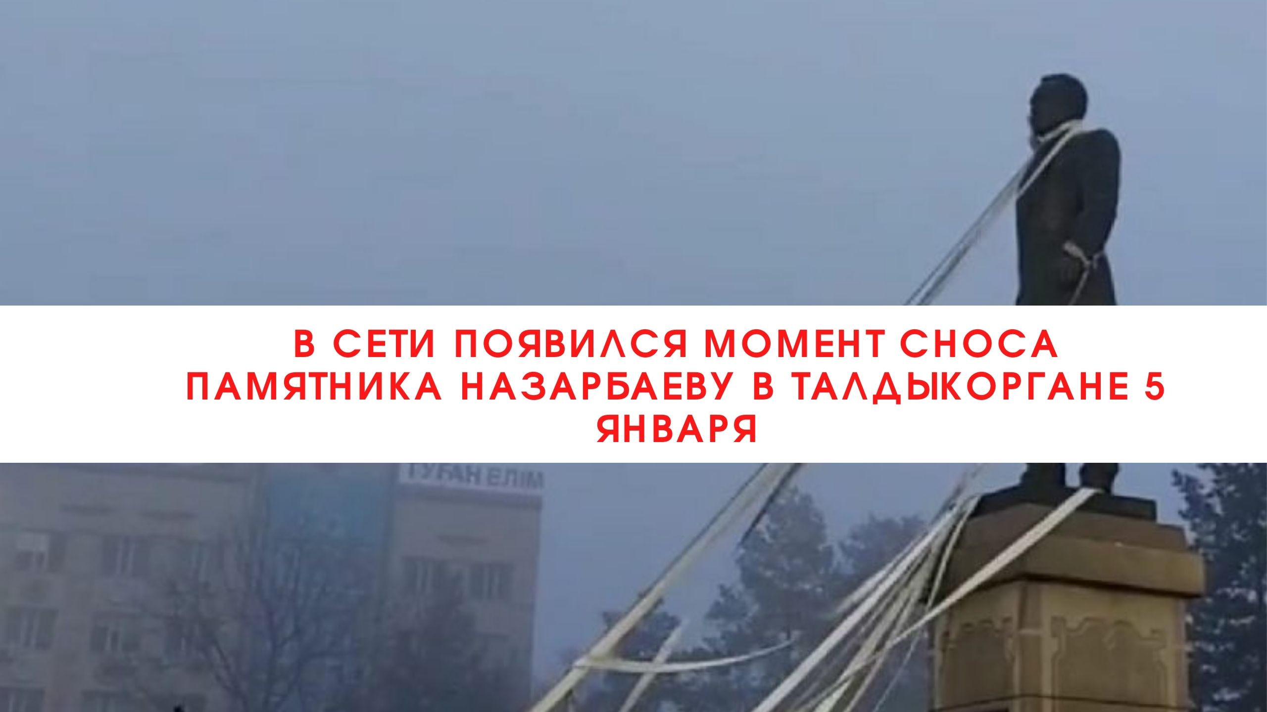 В сети появился момент сноса памятника Назарбаеву в Талдыкоргане 5 января///