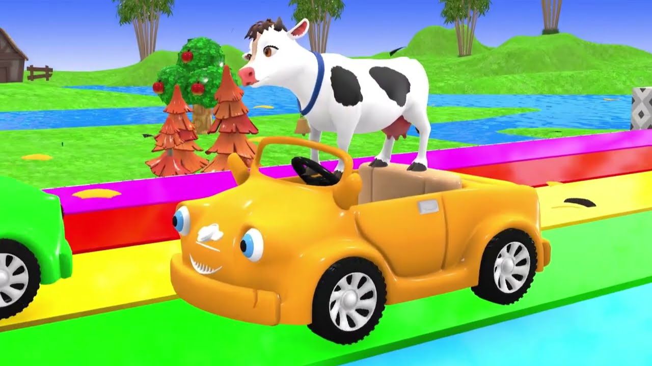 😹Милая мультяшная коровка едет верхом на машине🔥