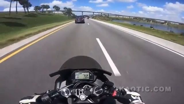 Мотоциклист ехал за полицейским автомобилем, и те резко затормозили #сша #байкер #полиция #погоня