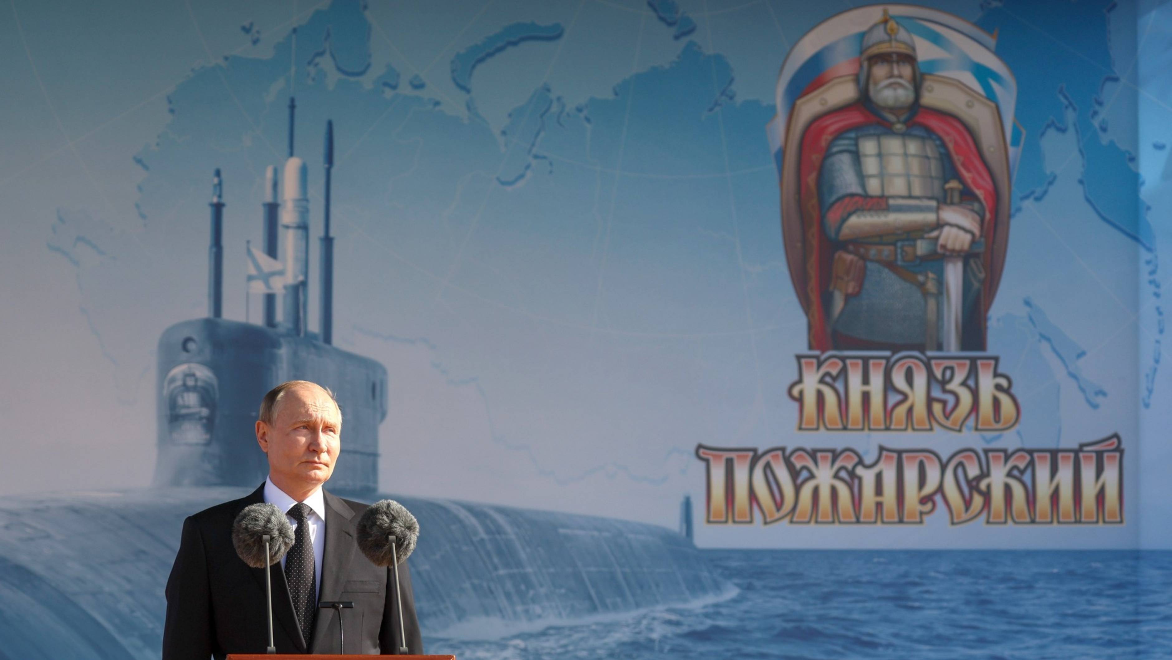 Смотрите плейлист Новости политики https://rutube.ru/plst/921867 В Северодвинске на заводе «Севмаш» Владимир Путин принял участие в торжественной церемонии подъёма военно-морского флага на атомном подводном крейсере «Князь Пожарский», поступающем в состав Военно-Морского Флота. 24 июля 2025 года 16:45 Северодвинск На церемонии также присутствовали Первый заместитель Председателя Правительства Денис Мантуров, помощник Президента Алексей Дюмин, помощник Президента Николай Патрушев, главнокомандующий Военно-Морским Флотом Александр Моисеев и губернатор Архангельской области Александр Цыбульский. Крейсер «Князь Пожарский» – корабль проекта «Борей-А» четвёртого поколения атомоходов. Подлодка оснащена современными комплексами ракетного и торпедного оружия, навигации, радиотехнического и гидроакустического вооружения, обладает высокими маневренными характеристиками и акустической малозаметностью. Судно стало 142-й атомной подводной лодкой, построенной на Северном машиностроительном предприятии – крупнейшем судостроительном комплексе страны, который входит в Объединённую судостроительную корпорацию. До 2030 года здесь планируется построить ещё шесть атомных подлодок. * * * Выступление на торжественной церемонии подъёма военно-морского флага на атомном подводном крейсере «Князь Пожарский»