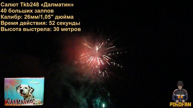 Салют фейерверк Tkb248 Далматин 40 больших залпов 26мм/1,05" в PiroFan.ru