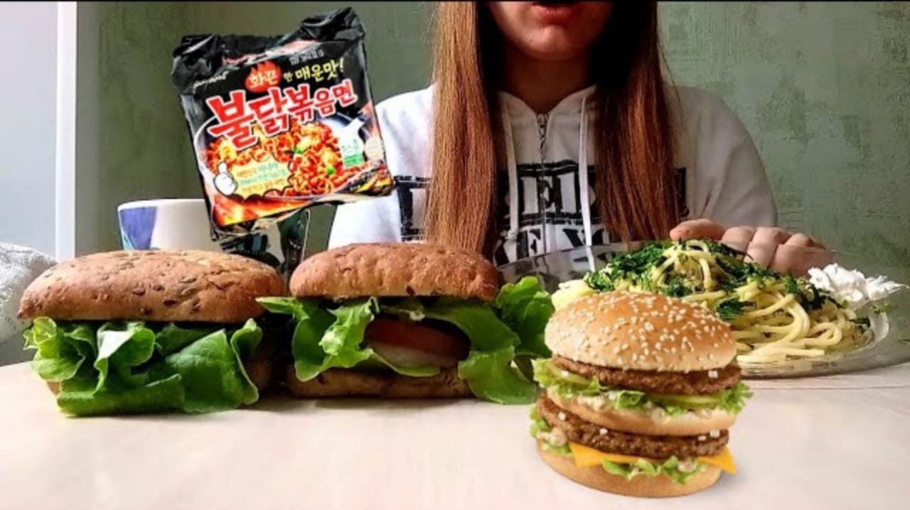 MUKBANG | БУРГЕРЫ | ЛАПША В СОУСЕ | BURGER