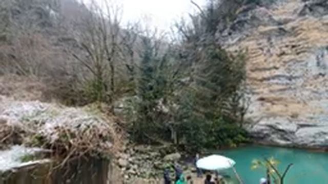 Голубое озеро (Абхазия) — озеро карстового происхождения площадью 180 м². Расположено в Абхазии, на правом берегу реки Бзыбь, на 13-м километре дороги к озеру Рица с левой стороны. Озеро яркого голубого цвета, который не блёкнет и не темнеет даже в самую ненастную погоду, не замерзает круглый год. Поверхность воды совершенно спокойна, несмотря на то, что рядом в него шумно вливается из-под скалы полноводный горный поток #кудапоехатьнавыходные #путешествия #путешествуемсалевтиной #Абхазия #голубоеозеро #экскурсиявабхазию #зимавабхазии