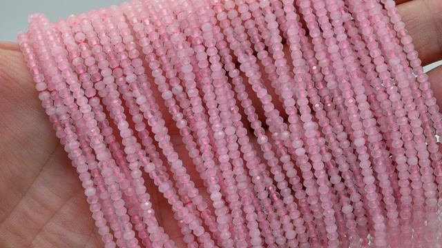 •Бусины из натурального камня розовый кварц в форме рондель с ювелирной огранкой. •Бусины собраны на шелковую нить. •Размер бусины 3*2мм ± 0,2мм. •Количество бусин: 186 ± 3шт. •Цена за нитку.
