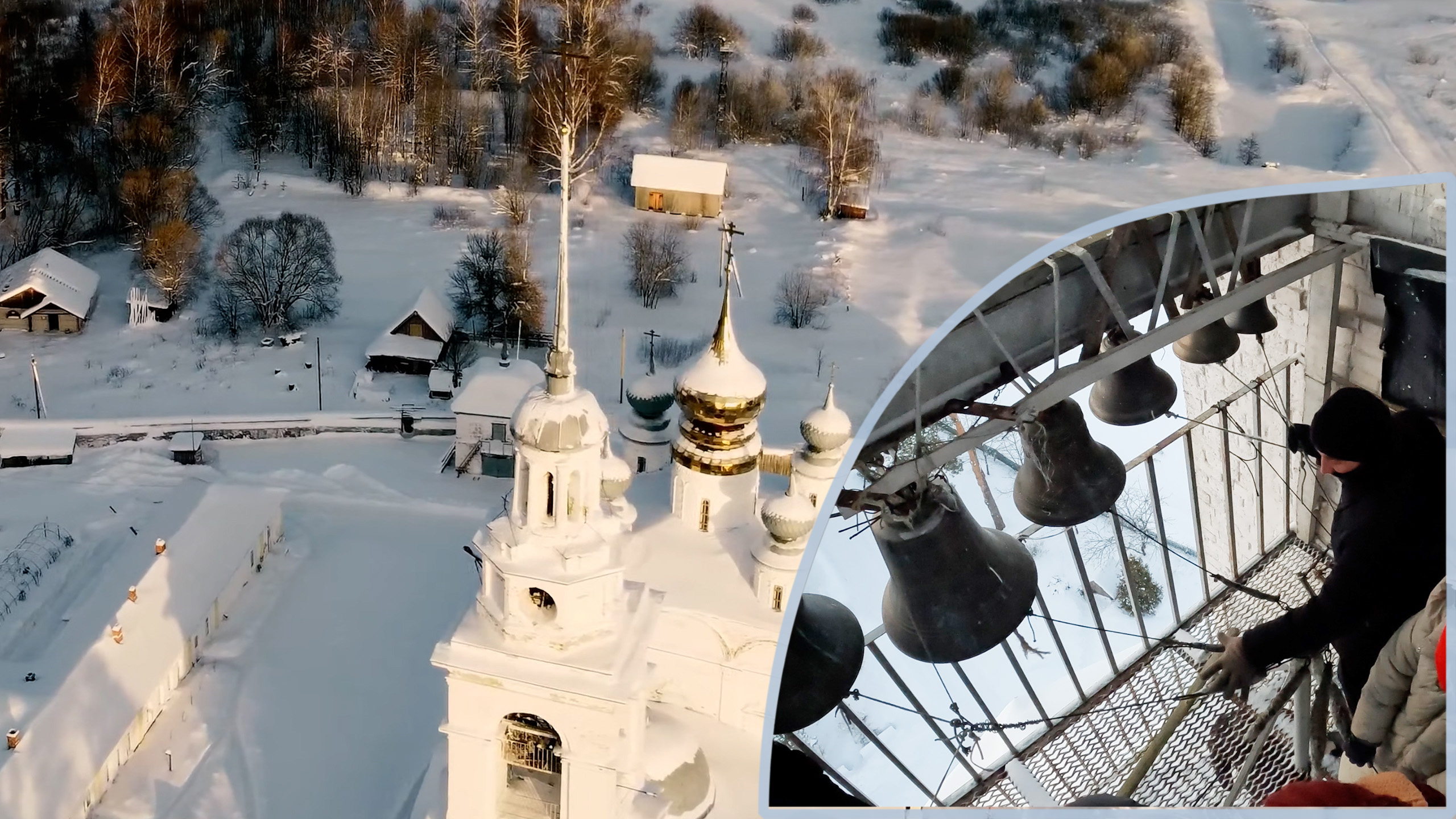 Звонарь Роман Пискун. Колокольня Свя́то-Нико́ло-Ти́хонова монастыря, Тимирязево, 9 января 2024