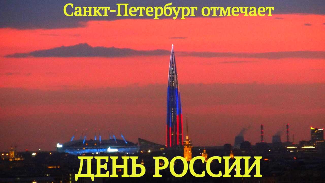 Башню "Лахта" в Санкт-Петербурге подсветили в цвета Российского флага Празднование Национального Дня России в Санкт-Петербурге началось накануне 12 Июня. Башню "Лахта-центр" подсветили в цвета российского триколора в 23 часа 11 июня 2021.