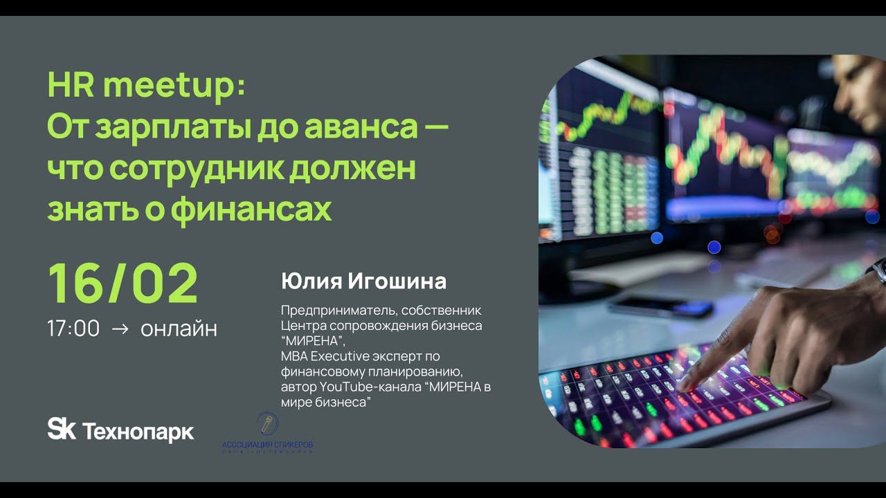 Почему сотрудникам не хватает денег, даже после повышения зарплаты Какие инструменты помогут взять под контроль личный бюджет Ловушки и “финансовые дыры” вашего кошелька Как начать копить и избавиться от кредитов И все это в игровой форме: 14 дней из жизни менеджера среднего звена Спикер - Юлия Игошина Предприниматель, собственник Центра сопровождения бизнеса “МИРЕНА”, MBA Executive эксперт по финансовому планированию, автор YouTube-канала “МИРЕНА в мире бизнеса” Специализация: Финансовое планирование для бизнеса Постановка управленческого учета Оптимизация налогообложения Финансовая модель для бизнес-плана Личные финансы Профессиональный опыт: Успешный практик, имеет 11-летний опыт ведения собственного бизнеса, созданного «с нуля» Собственник и руководитель Центра сопровождения бизнеса «МИРЕНА» (бухгалтерские, юридические, маркетинговые услуги, услуги по финансовому планированию и постановке управленческого учета) Эксперт по финансовому планированию Аудитор MBA Executive Член Международного Клуба предпринимателей «Деловар» Член Ассоциации Спикеров Санкт-Петербурга Член Торгово-промышленной палаты Автор онлайн-курса «Путь к финансовой независимости» Автор YouTube-канала “МИРЕНА в мире бизнеса” 11+ лет руководитель Центра сопровождения бизнеса «МИРЕНА» 50+ мастер-классов по финансовому планированию за 3 года 6 000+ подписчиков на YouTube-канале «МИРЕНА в мире бизнеса» 93% клиентов обращаются по рекомендациям