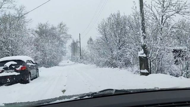 Апрельский снег, еду на дачу на летней резине