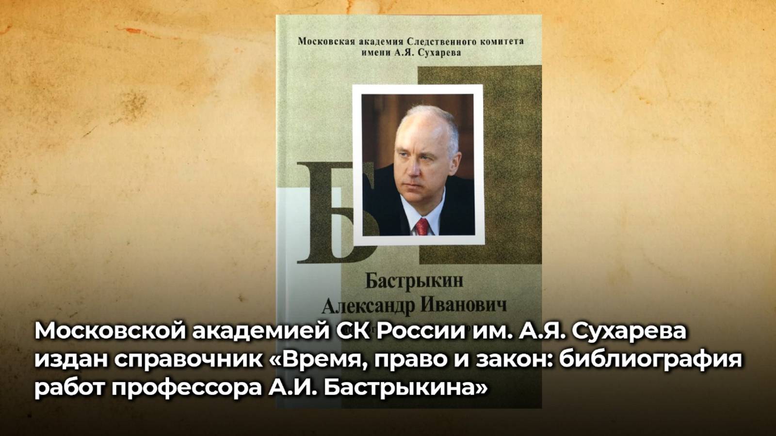 Московской академией Следственного комитета имени А.Я. Сухарева издан справочник «Время, право и закон: библиография работ профессора Александра Ивановича Бастрыкина». В него включен хронологический указатель библиографического описания печатных работ А.И. Бастрыкина, трудов, выполненных под его редакцией, интервью с ним в ведущих российских СМИ, раскрывающих полный спектр интересов ученого и государственного деятеля, а также различные аспекты его научной, организаторской и просветительской деятельности. Справочник был презентован заместителем Председателя Следственного комитета России Александром Вячеславовичем Фёдоровым в рамках XIII Петербургского международного юридического форума. Он отметил, что издание – это ключ к знаниям, своего рода «компас», который позволит ориентироваться в мире юридических публикаций. Материалы, перечисленные в сборнике, охватывают широкий спектр актуальных проблем теории государства и права, уголовного и международного права, уголовного процесса и криминалистики и являются ценным источником для изучения деятельности следственных органов, проблем раскрытия и расследования преступлений, а также реформирования уголовного и уголовно-процессуального законодательства. #АИБастрыкин #АлександрБастрыкин #Бастрыкин #БастрыкинПрофессор #БиблиографическийСправочник #БастрыкинКниги
