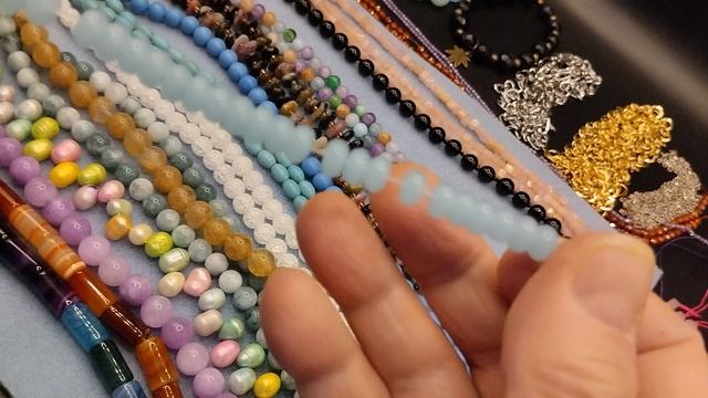 1.Нить агата тонированного трубы16 х10 2.Нить сердолика трубы 16х10 3.Нить тонированного кварца фиолетового цвета 10 мм 4.Нить разноцветного жемчуга 8-10 мм 5. 2 нити амазонита 8 мм 6.Нить кварца - волосатая 10 мм 7. 2 нити сахарного кварца 8 мм 8. 2 нити говлита 10х 8 9. 2 нити чипсов турмалина 10-14 мм 10. 2 нити самоцветов 6 мм 11.Нить говлита 8 мм 12. Нить аквамарина счеты 8х4 мм 13. бусы из черного агата 8 мм 14. 3 нити розового кварца кубик 4х4 мм 15.браслет из аквамарина 12 мм 16 браслет из улексита 10 мм 17. 2 нити красных циркония 18. 2 нити сиреневых циркония 19.цепочка из нержавеющей стали звено цепочки 10х6 мм 20.цепочка с покрытием 18 К золотом 21. цепочка с не разьемными звеньями 3х2 мм 22. Подвеска- агат с другой 45 мм 23.Аметист - кулон 56 мм 24. 6 аметистов на серьги: 2 - 35х15 мм, 2-30х20 мм и 2-18х14 мм 25. 3 подвесочки "сердце" с фианитом и эмалиевым покрытием Жду заказов от моих подписчиков и зрителей! Мой телефон +7 915 700 77 87(вацап, вайбер - переписка), можно послать смс на телефон или написать в комментариях. Принимаю заказы на изготовление украшений из ваших или моих материалов Беру на переделку ваши устаревшие или пришедшие в негодность украшения. Подписывайтесь на мой канал, ставьте лайки, пишите комментарии