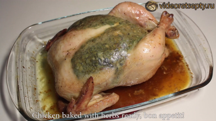 Цыпленок запеченный с зеленью / Chicken baked with herbs