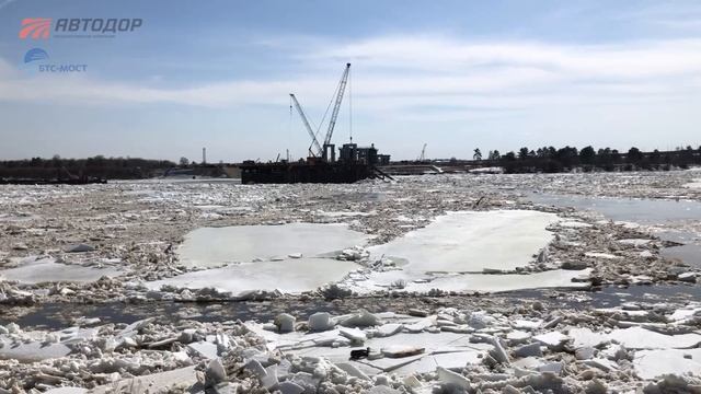Ледоход на Оке у Мурома. Строители предусмотрительно создали защиту конструкций технологического моста и шпунтового ограждения котлована ростверка пилона будущего моста через Оку от ледохода. Это единственный вантовый мост на М-12. Он соединит Владимирский и Нижегородский берега на 4 этапе строительства М-12. Двухпилонная конструкция моста предполагает сооружение отдельных опор высотой около 80 метров. Их возведением занимается группа компаний «БТС-МОСТ». #дневникстройкиМ12