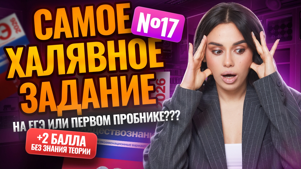 👉 Забирай бесплатные полезные файлы для подготовки к ЕГЭ по обществознанию из закрепа в телеграм-канале: https://short.umschool.net/rt_tgmlva В этом видео подробно разберём 17 задание ЕГЭ по обществознанию. Покажу, почему его считают одним из самых лёгких и как с помощью простой стратегии можно заработать +2 балла даже без глубокого знания теории. Разберём примеры, типичные ошибки и правильные подходы к выполнению. Такой разбор поможет чувствовать себя увереннее уже на первом пробнике. Я Анастасия Малова, готовлю 11-классников к ЕГЭ по обществознанию в онлайн-школе «Умскул». Преподаю с 2016 года. 189 моих учеников сдали на 100 баллов, а 4 978 — на 90+ ⚡️ Я протестировала за тебя обучение на очке, заочке, а также в гуманитарном и техническом вузах. Поделюсь всеми плюсами и минусами ❤️ 🍓 Готовься к ЕГЭ вместе с Умскул уже сейчас, чтобы точно сдать на максимум. Переходи по ссылке, чтобы записаться или задать вопрос: https://short.umschool.net/rt_obsh_ege Мы составим для тебя персональный трек обучения по 4 предметам так, что ты не выгоришь, и поможем поступить в вуз, о котором ты мечтаешь! С нашими преподавателями ты точно поймёшь и полюбишь предмет и узнаешь обо всех подводных камнях экзаменов. Немного об Умскул: — Каждый 10-й стобалльник России в 2024 году готовился в Умскул. — Подготовили 4 000+ стобалльников. — 41 000+ наших учеников сдали ЕГЭ на 90+. — За 8 лет подготовили 500 000+ учеников к ЕГЭ и ОГЭ. ❗ Если ты в 10-м классе, тебе помогут мои коллеги Кристина Лазарева и Равиль Кандинский — они готовят 10-классников к ЕГЭ: — Кристина Лазарева: https://short.umschool.net/ext_lzrv — Равиль Кандинский: https://short.umschool.net/ext_kzmn 🔔 Подписывайся на канал, ставь лайк и жми на колокольчик, чтобы не пропустить новые видео! #умскул #егэ #обществознание