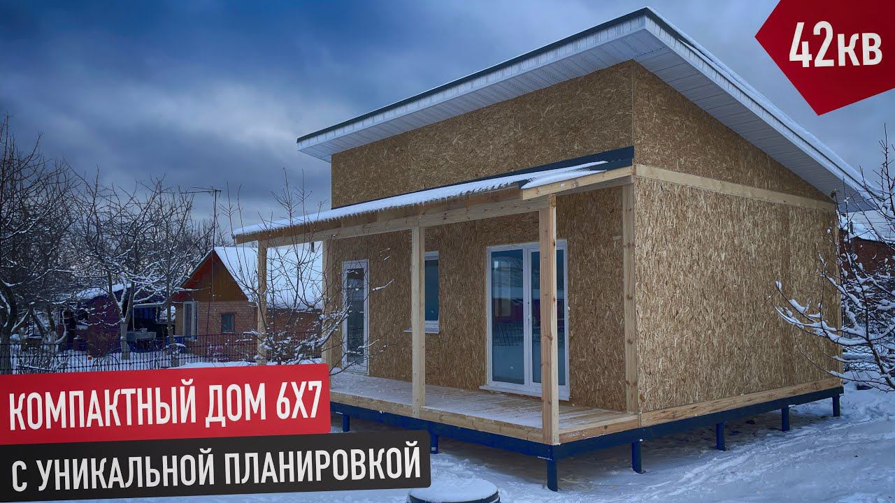 КОМПАКТНЫЙ ДОМ 6Х7 из СИП ПАНЕЛЕЙ. Уникальная планировка с двумя спальнями. Дом с плоской кровлей.