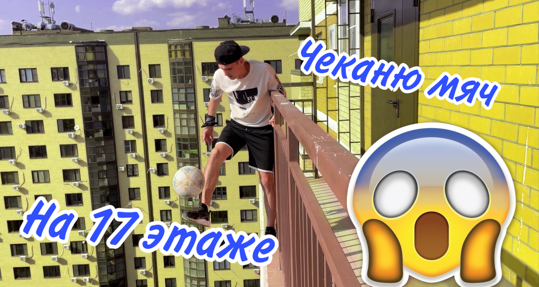 Всем привет, Меня зовут Зубов Дмитрий, в этом видеоролике я хочу сделать то, что не каждый сможет сделать преодолев свой страх высоты, чеканить мяч на 17 этаже за балконом без страховки