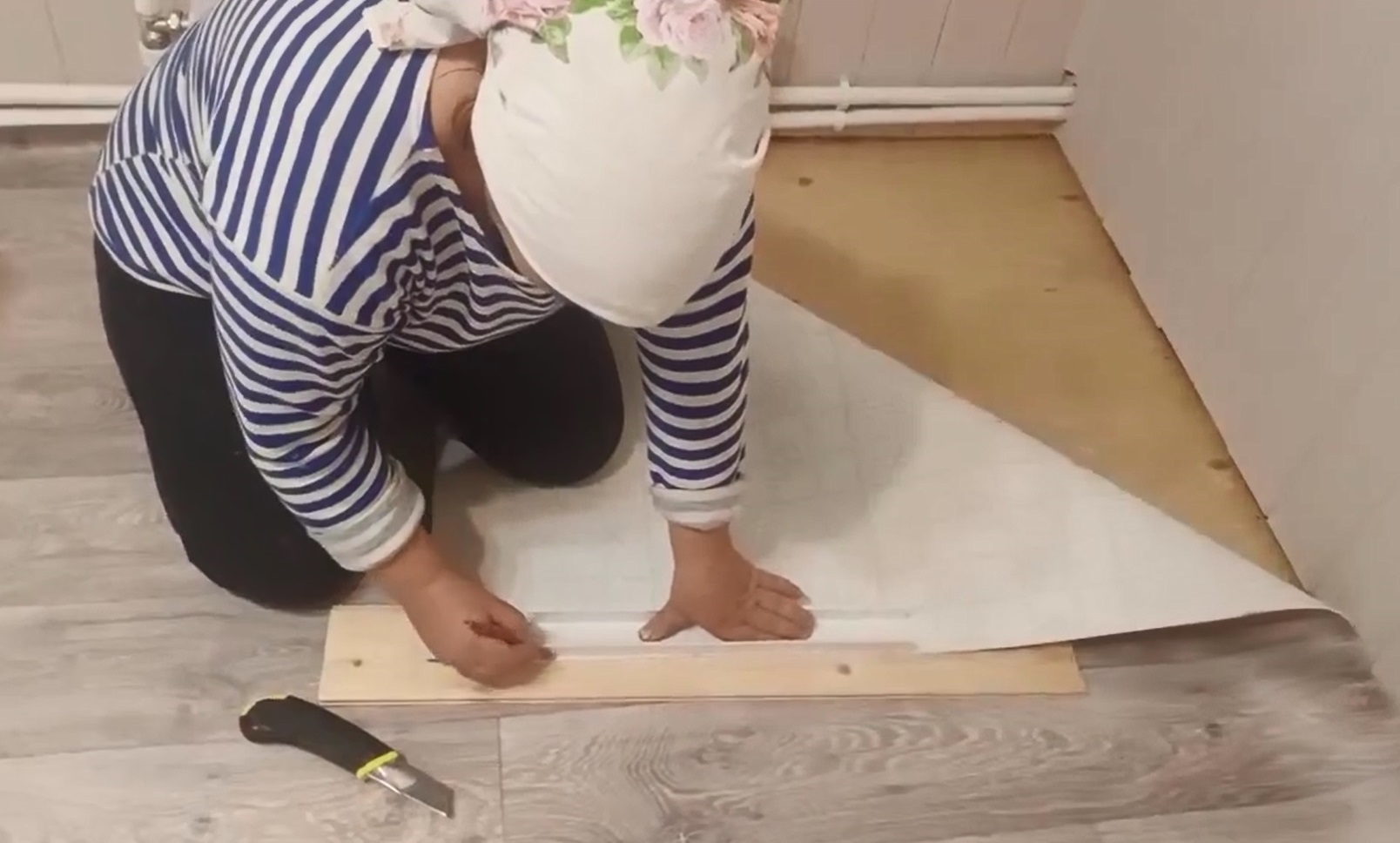 Как Танюшка кладет линолиум