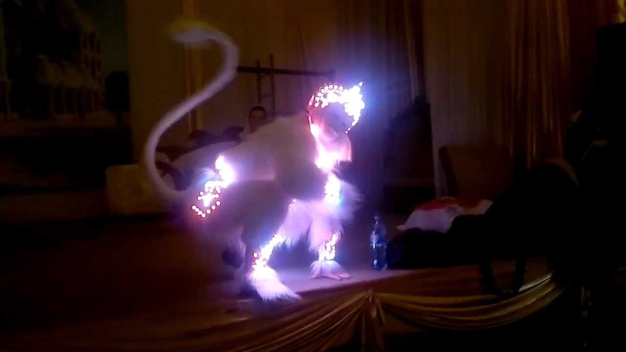 Светодиодный костюм Хануман (царь обезьян). Этот удивительный персонаж был создан мастерами театра Мадхура (Москва). Премьера световой постановки Рамаяна, состоялась 14 июля 2012 в Москве.