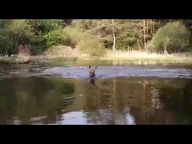 На Урале наступили жаркие дни. Лось купается в реке Пышме рядом с туристами. Автор видео - Никита Савельев.