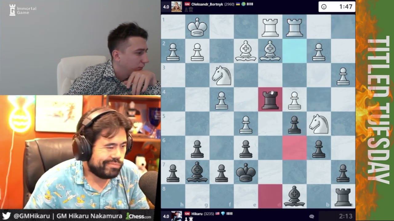 TITLED TUESDAY 13.06.2023 Bortnyk Chess School Großmeister GM Olexandr Bortnyk Channel: https://www.twitch.tv/bortnykchess Hikaru Großmeister GM Hikaru Nakamura Channel: https://www.twitch.tv/gmhikaru You can support my channel: https://www.donationalerts.com/r/nikoladubovik #chess #шахматы #chesscom #lichess #schach #xadrez #szachy #échecs #scacchi #棋牌 #شطرنج #ajedrez #alexgelman #шахматнаянаркомания #ниднябезчесса #накрутилнасвоюголову #тяпнул #гельманстайл #радостныешахматы #неолимпийскийчемпион #happychess #подкрут #жертувуюкачество #гельман #шура #динамикаесть #бью #chess #шахматы #alexgelman #chesscom #lichess