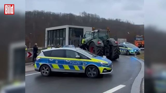Traktor durchbricht Polizei-Sperre