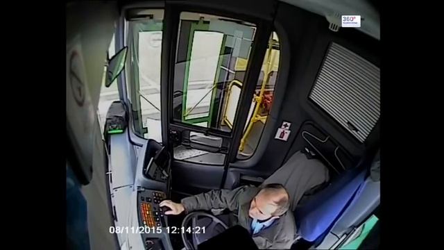 Водитель автобуса заснул за рулём и врезался в столб. Видео с разных камер.