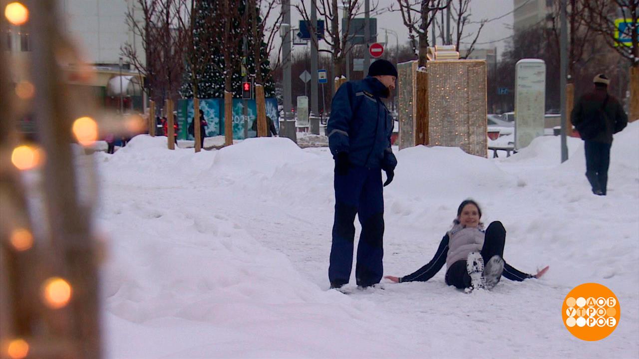 Гололед: руки - шире, голову - выше! Доброе утро. Фрагмент выпуска от 19.12.2023