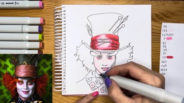 Как нарисовать шляпника из "Алисы в стране чудес" скетч маркерами | Рисунок поэтапно и легко