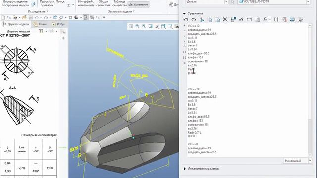 Создана универсальная модель рабочей части отвертки крестовой по ГОСТ 52785-2007, позволяющая в автоматическом режиме создавать чертежи рабочих частей отверток различных типоразмеров. В этом видео внесены уточнения в ранее созданную модель, адрес которой на канале следующий: https://www.youtube.com/watch?v=eMXwMXB0HoQ Универсальность модели достигается применением программной конструкции if-endif. Следует отметить, что применение комбинированных состояний не является единственным способом, который можно применить для замены символьных обозначений размеров на смысловые (человекопонятные) имена. Замена символьных обозначений размеров и других параметров модели другим способом широко применяется в видео об адаптивной пружине сжатия: https://www.youtube.com/watch?v=pNQg1r-NJJM Полную коллекцию уроков см. на сайте: https://engineer-center.ru/free-lessons/
