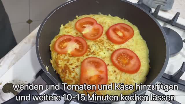 Процесс приготовления и ингредиенты: Натереть 4 картофелины среднего размера Выдавить картофельный сок Добавьте 1-2 яйца (в зависимости от размера картофеля), соль и специи по вкусу. 3 столовые ложки муки хорошо смешать Смазать растительным или оливковым маслом Равномерно распределите тесто по сковороде. Жарить под крышкой по 10 минут с каждой стороны на среднем огне. Нарезать 100-150 г сыра 1 помидор нарезать кольцами Когда одна сторона будет готова, добавьте томаты, сыр и приправы. Приятного аппетита