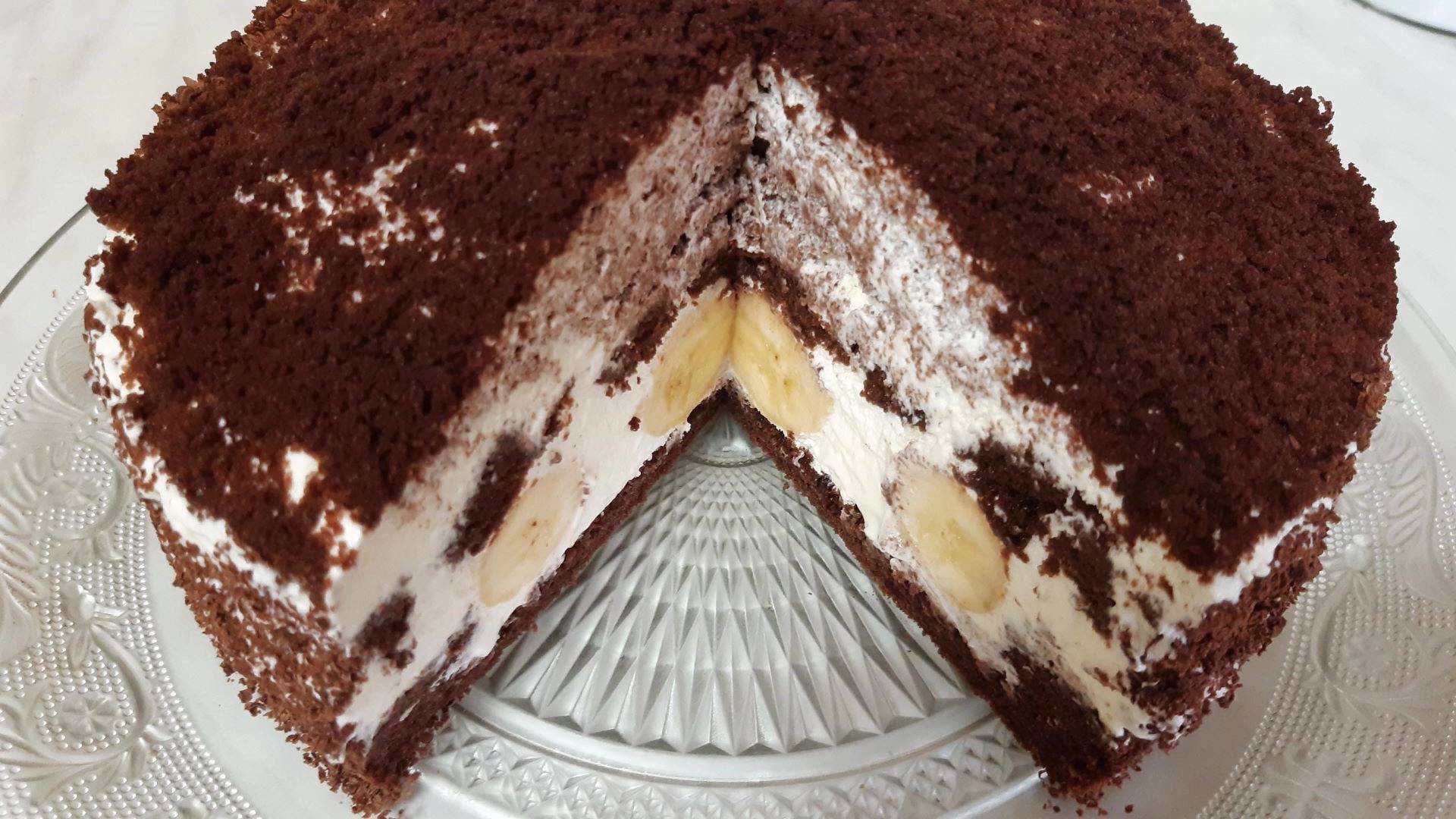Фантастический Торт НОРКА КРОТА просто приготовить и БЕЗ ВЗБИВАНИЯ и БЕЗ ЯИЦ! Бисквит БЕЗ ВЗБИВАНИЯ и БЕЗ ЯИЦ, за 5 Минут и ВСЕГДА ПОЛУЧАЕТСЯ! Вода - 250 мл Сахар - 120 г Мука - 220 г Какао - 25 г Масло растительное - 60 мл Разрыхлитель - 10 г Соль Для формы диаметром 24 см. КРЕМ ЧИЗ: Сливки 33% - 500 г Сгущенка - 200 г Творожный сыр - 300 г Бананы - 3-4 шт Шоколад для украшения. Марина Еникеева