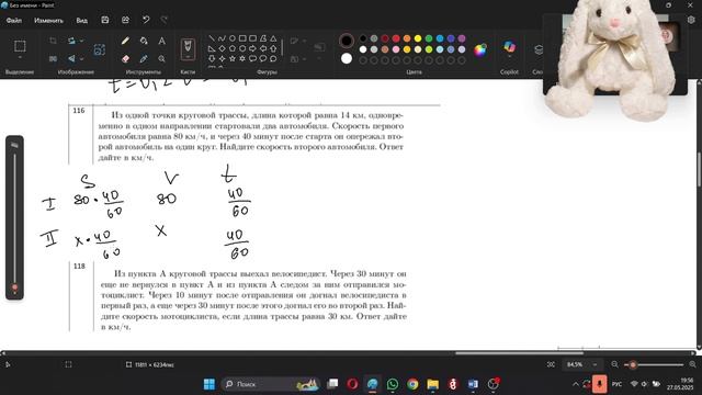 Из одной точки круговой трассы, длина которой равна 14 км, одновременно в одном направлении стартовали два автомобиля. Скорость первого автомобиля равна 80 км/ч, и через 40 минут после старта он опережал второй автомобиль на один круг. Найдите скорость второго автомобиля. Ответ дайте в км/ч.