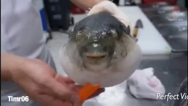 RYTP| Рыба фугу ест морковку.