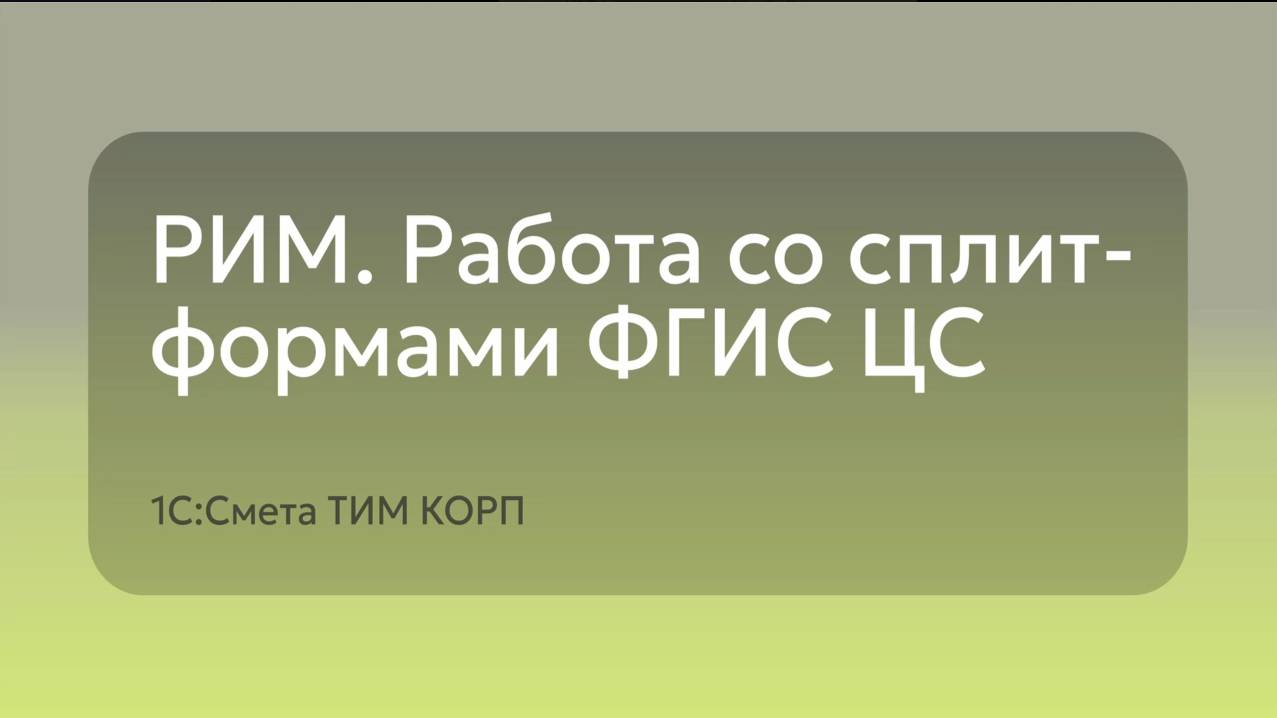 1С Смета ТИМ КОРП - РИМ. Работа со сплитформами ФГИС ЦС